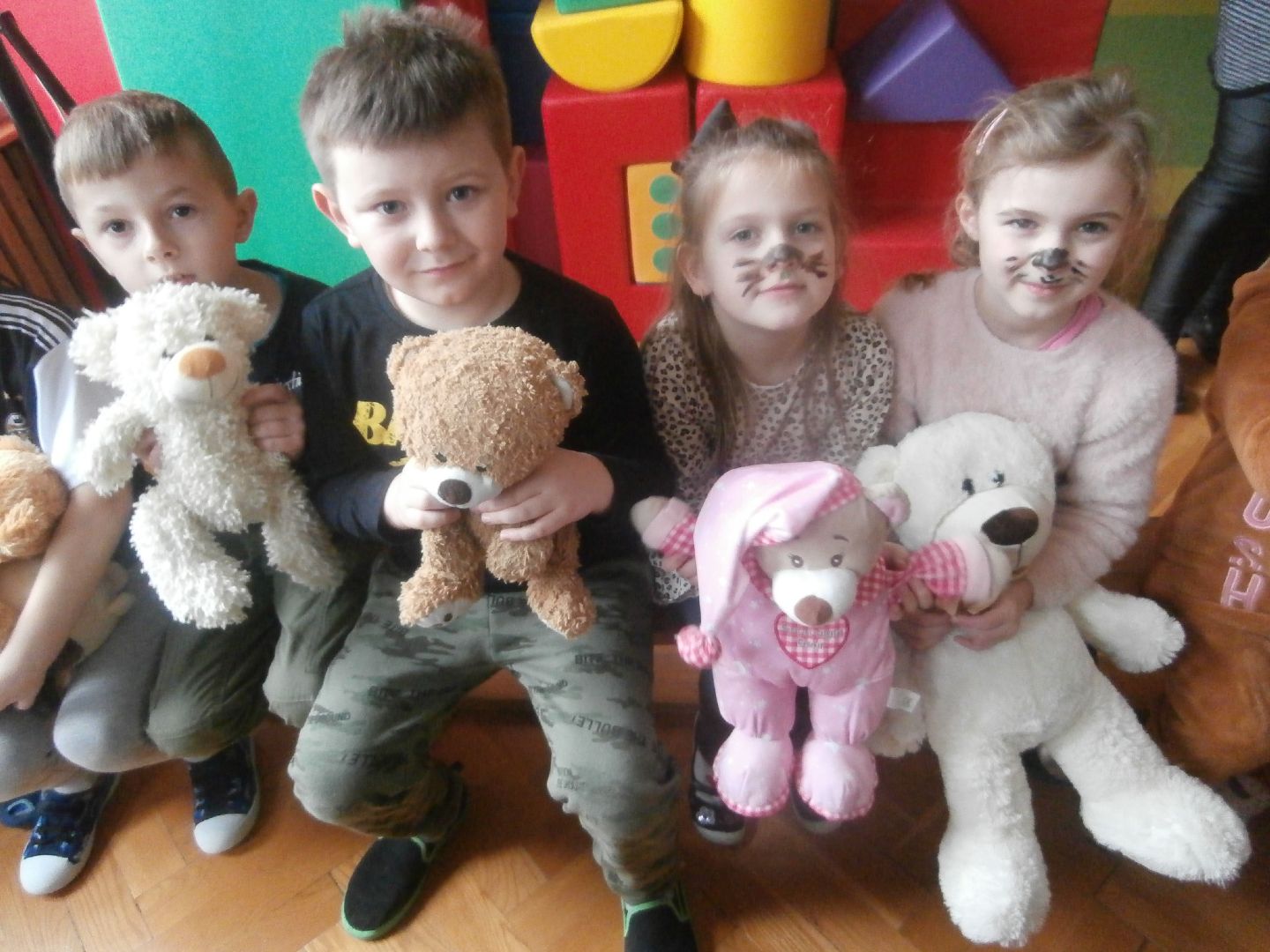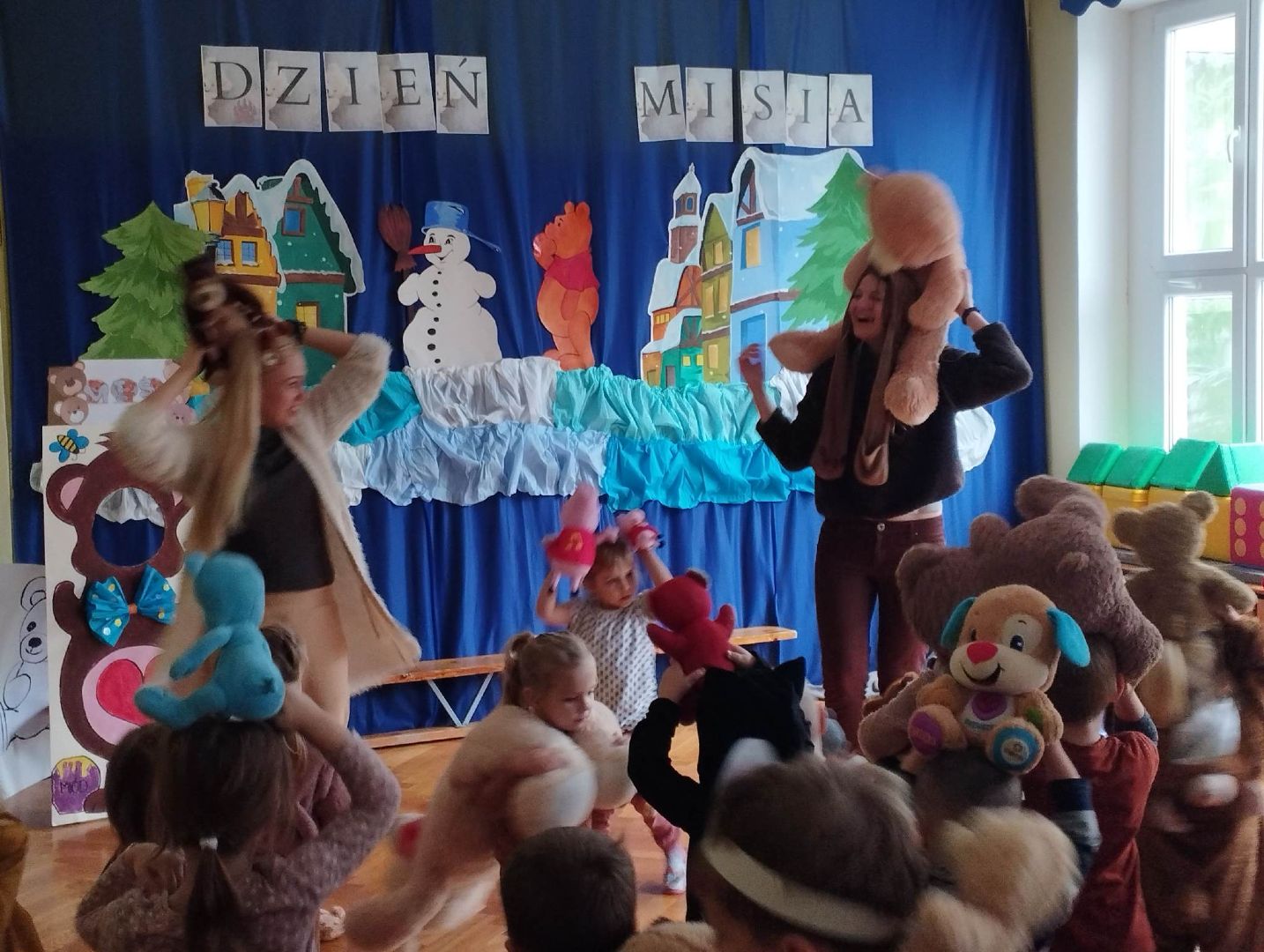 Podczas uroczystości którą poprowadziły panie: Ania i Bogusia, oprócz misiowych harców, zabaw, konkursów i pląsów dzieci poznały historię Święta Pluszowego Misia