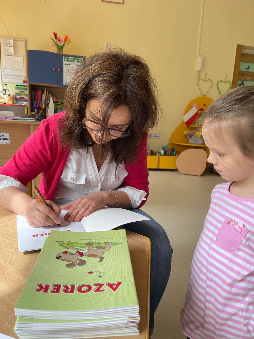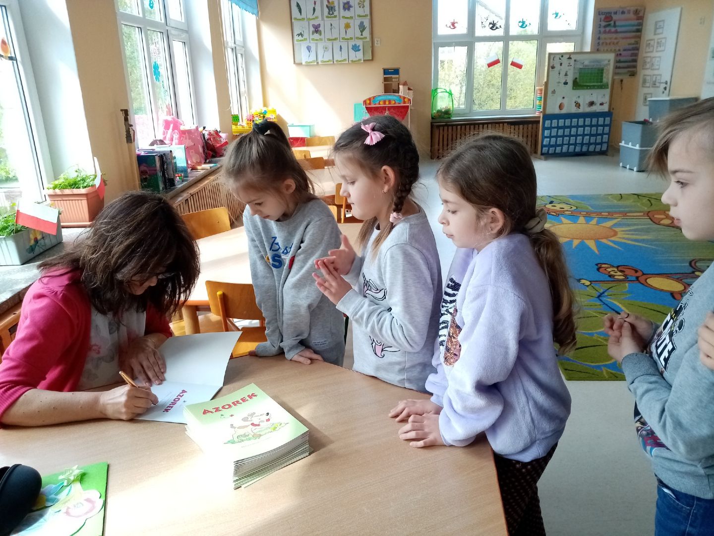 Światowy Dzień Książki i Praw Autorskich obchodzony jest 23 kwietnia. Jest to doroczne święto organizowane przez UNESCO w celu promocji czytelnictwa, edytorstwa i ochrony własności intelektualnej za pomocą praw autorskich. Dzień ten po raz pierwszy obchodzono w 1995 roku. Z okazji tego święta w naszym przedszkolu w dniach 26-28 kwietnia gościła Pani Katarzyna Janowicz-Timofiejew, autorka książek dla dzieci. Pani Kasia opowiadała dzieciom o swojej twórczości i czytała fragmenty swojej niezwykłej książeczki „Azorek”. Autorka zorganizowała również maluchom zabawy muzyczno-ruchowe związane z przygodami tytułowego pieska. Na koniec spotkania przedszkolaki otrzymały książkę z dedykacją.