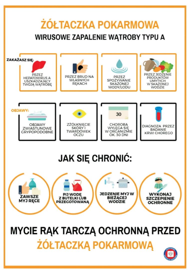 Podlaski Państwowy Wojewódzki Inspektor Sanitarny w Białymstoku wraz z Podlaskim Kuratorem Oświaty, informują, że na terenie powiatu białostockiego zanotowano wzrost liczby zakażeń wirusem zapalenia wątroby typu A. Zadbajmy o swoje zdrowie!