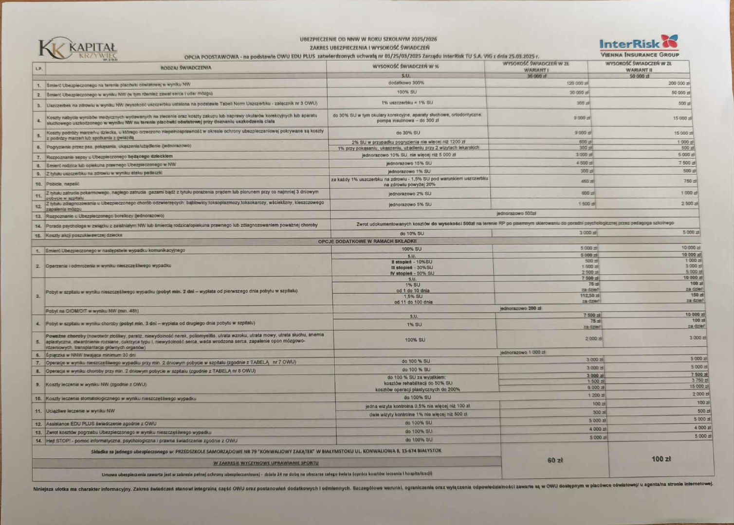 przedstawiamy propozycję ubezpieczenia dla chętnych