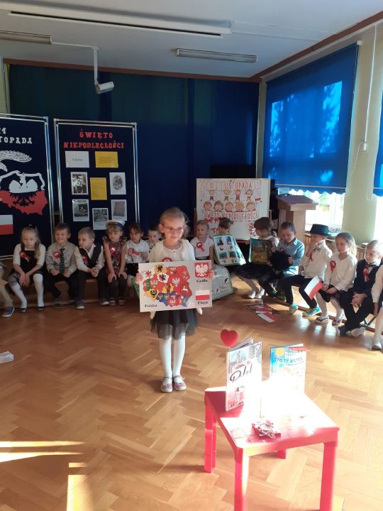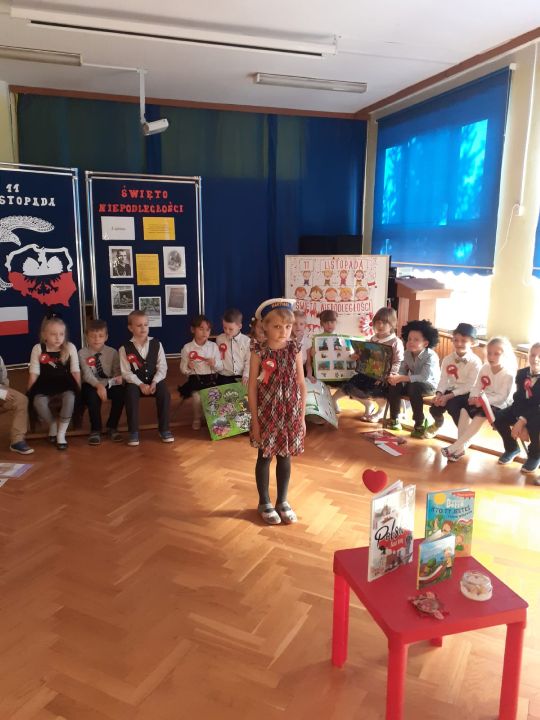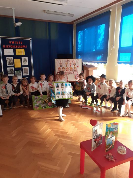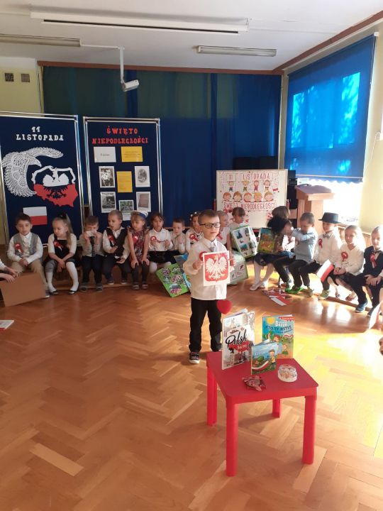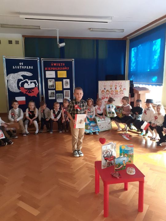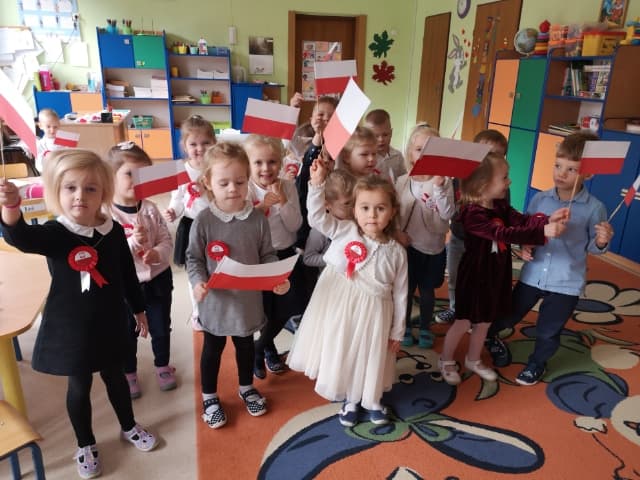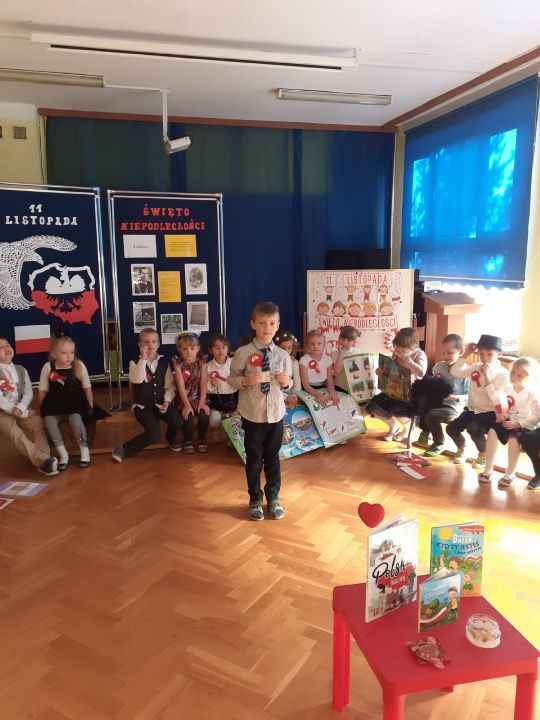 10 listopada przedszkolaki uczciły Święto Niepodległości. Zaprezentowały wiersze i piosenki o Polsce. Najstarsza grupa z tej okazji przygotowała przedstawienie. O godz. 11.11 wszystkie grupy zaśpiewały Hymn Polski w ramach projektu "Piękna Nasza Polska Cała".