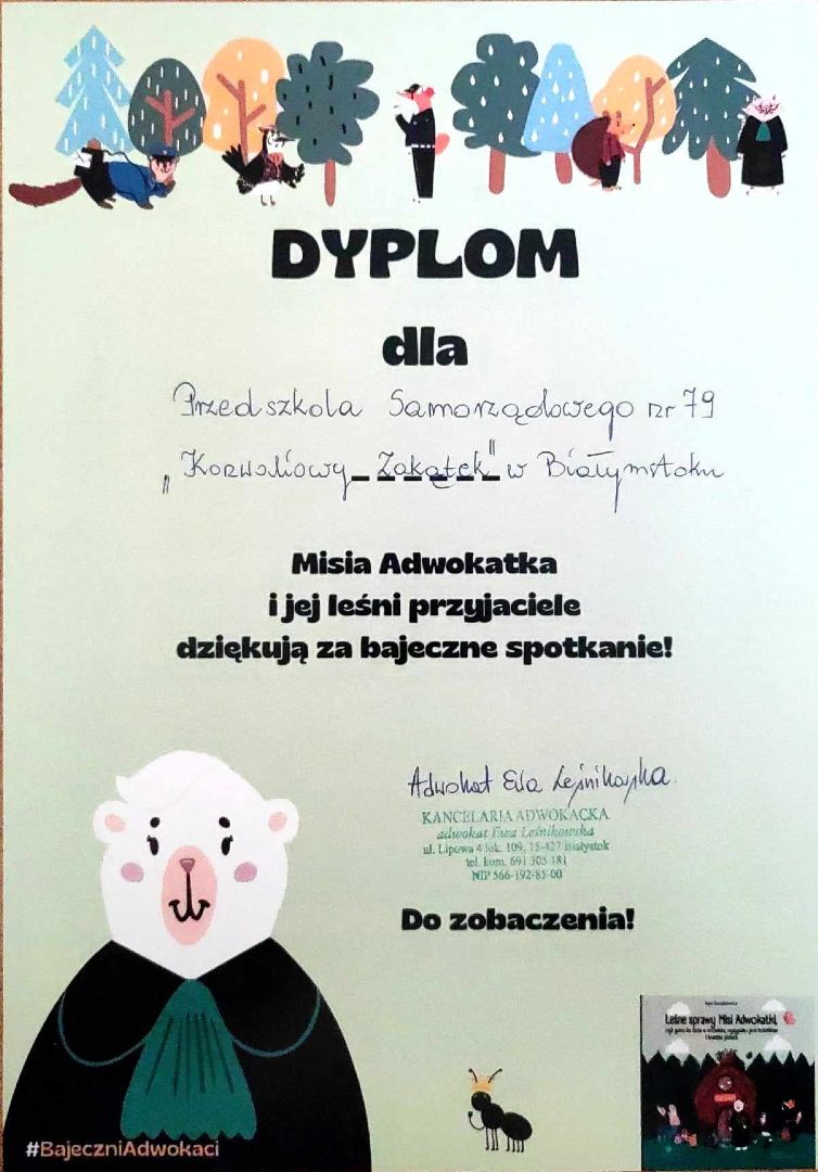 Dnia 6 czerwca nasze przedszkole odwiedziła Pani Adwokat Ewa Leśnikowska w ramach akcji "Bajeczni Adwokaci"