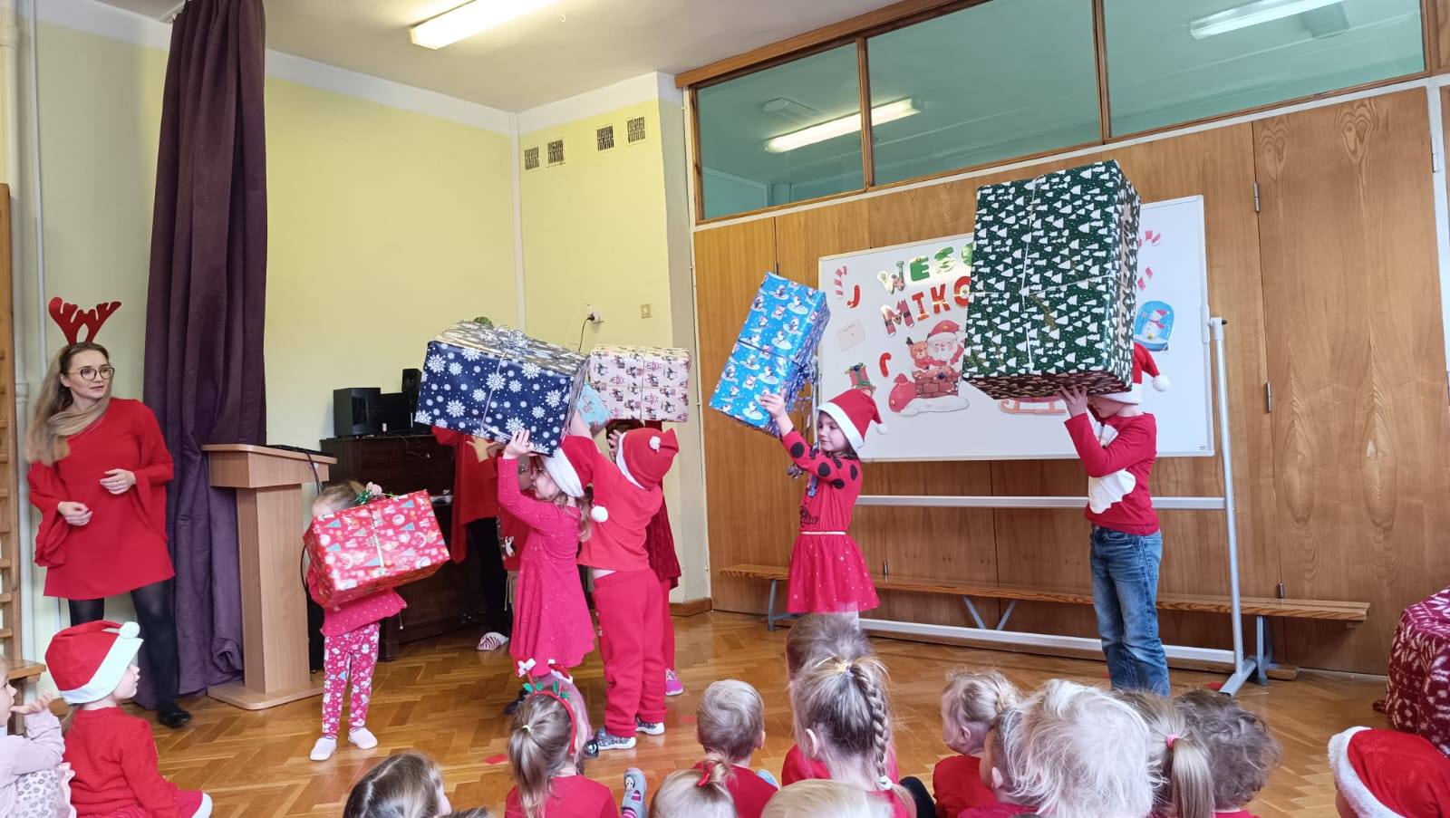 6 grudnia, Mikołajki, to jeden z najbardziej oczekiwanych przez dzieci dni w roku. To wyjątkowe święto w przedszkolu, które uwielbiają wszystkie maluchy. Już od progu, w holu, czekała na wchodzących miła niespodzianka. Mikołaj witał dzieci i częstował słodyczami. Wszystkie przedszkolaki ubrały się do przedszkola na czerwono, a ich głowy zdobiły mikołajkowe czapki oraz świąteczne opaski. Na sali gimnastycznej odbyła się impreza Mikołajkowa gdzie dzieci wspólnie śpiewały piosenki i tańczyły. To był wspaniały dzień!