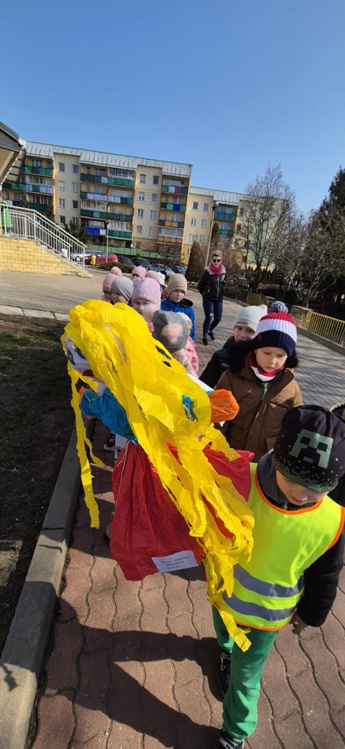 🌞🌼 Dziś z radością świętowaliśmy pierwszy dzień wiosny! 🌱👧👦 Nasze przedszkolaki, pełne energii i uśmiechu, ubrane w wiosenne kolorowe stroje, wyruszyły na kolorowy przemarsz ulicami, niosąc ze sobą własnoręcznie wykonane Marzanny – symbol pożegnania zimy i powitania wiosny. 🎉